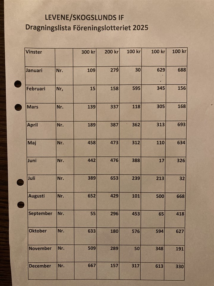 Dragning för hela 2025 Levene/Skogslunds IF 15 dec 2025 0kommentarer