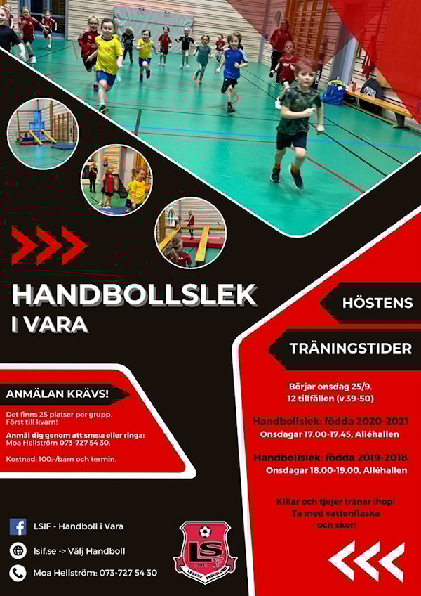 Då är det snart dags för Handbollslek igen! Denna gången två grupper och i Alléhallen. Begränsat med platser så anmäl dig snarast. Först till kvarn! ?😊